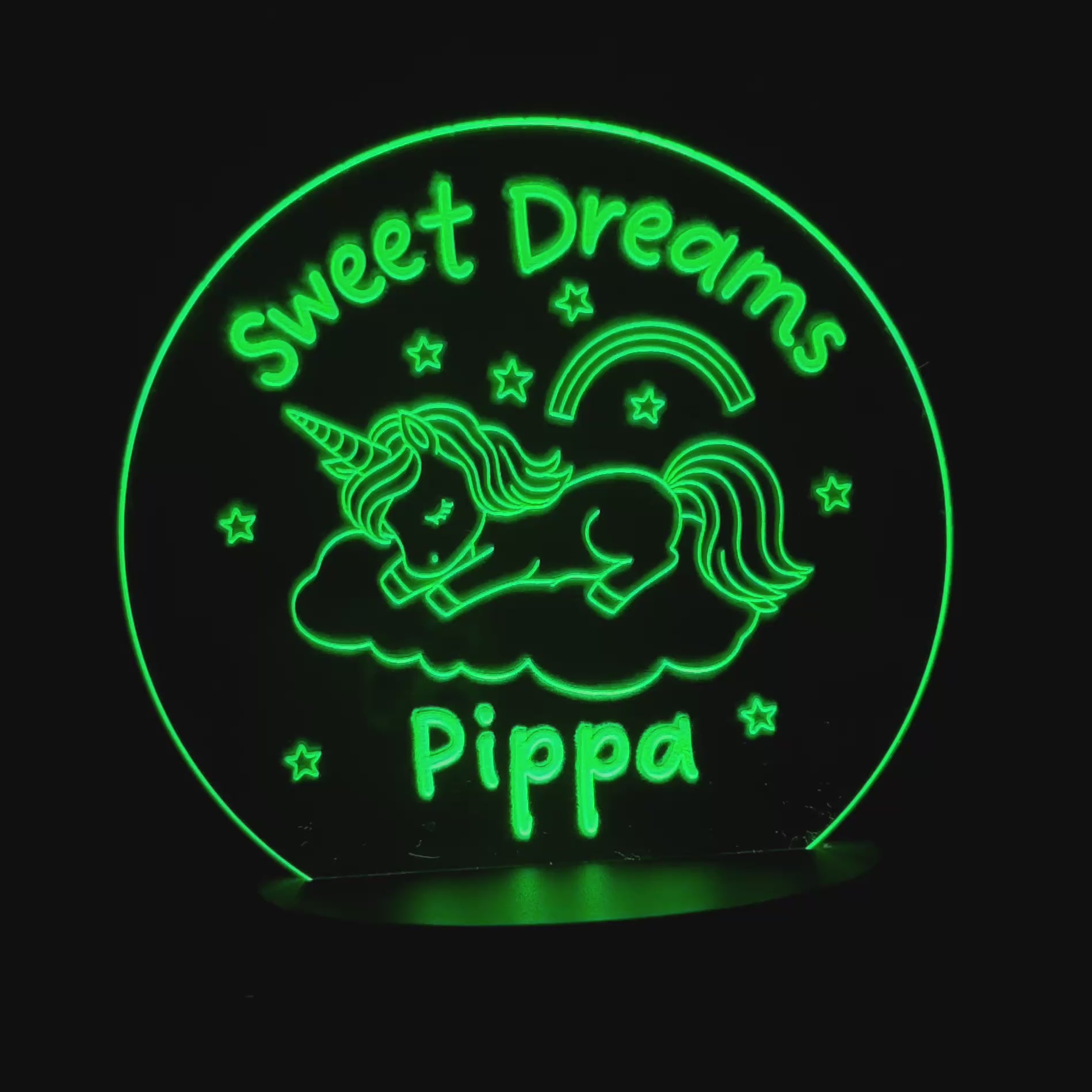 This cute and child friendly night light features an image of a sleeping unicorn, made from 3mm Clear acrylic and engraved on design.